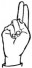 На ћирилици написано ПАУН ЂОГАТОВИЋ састоји се из 13 слова [?]. Исписано ћириличном једноручном азбуком за глувонеме: